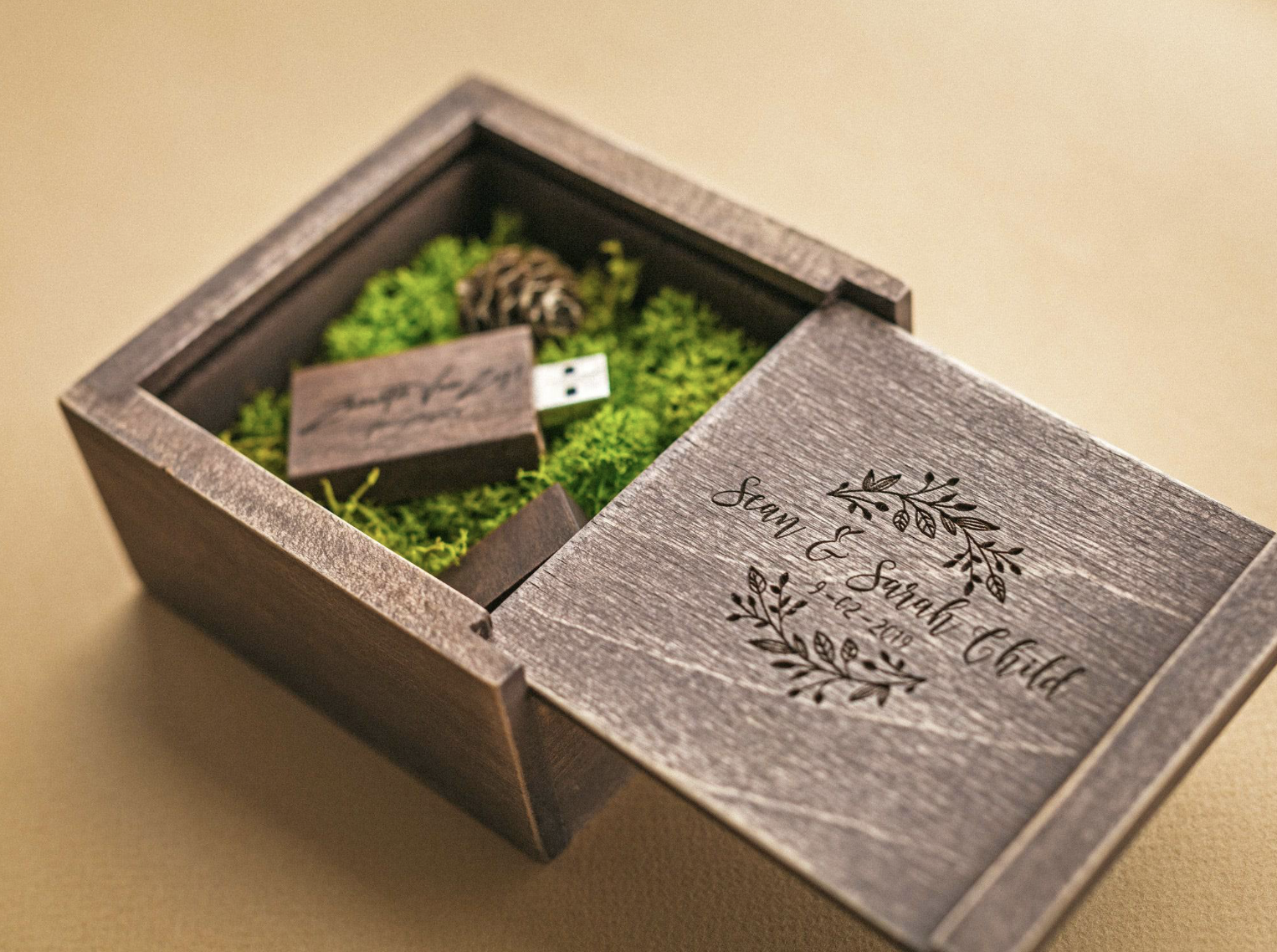 Alt i en boks for minnepinne. Håndlaget med kjærlighet. Dette er en fin måte å holde alle minner trygge og på ett sted. De nydelige bildene deres legges på en minnepenn i tre med fotografens logo og plasserer den i en gravert boks med treull i bunn.